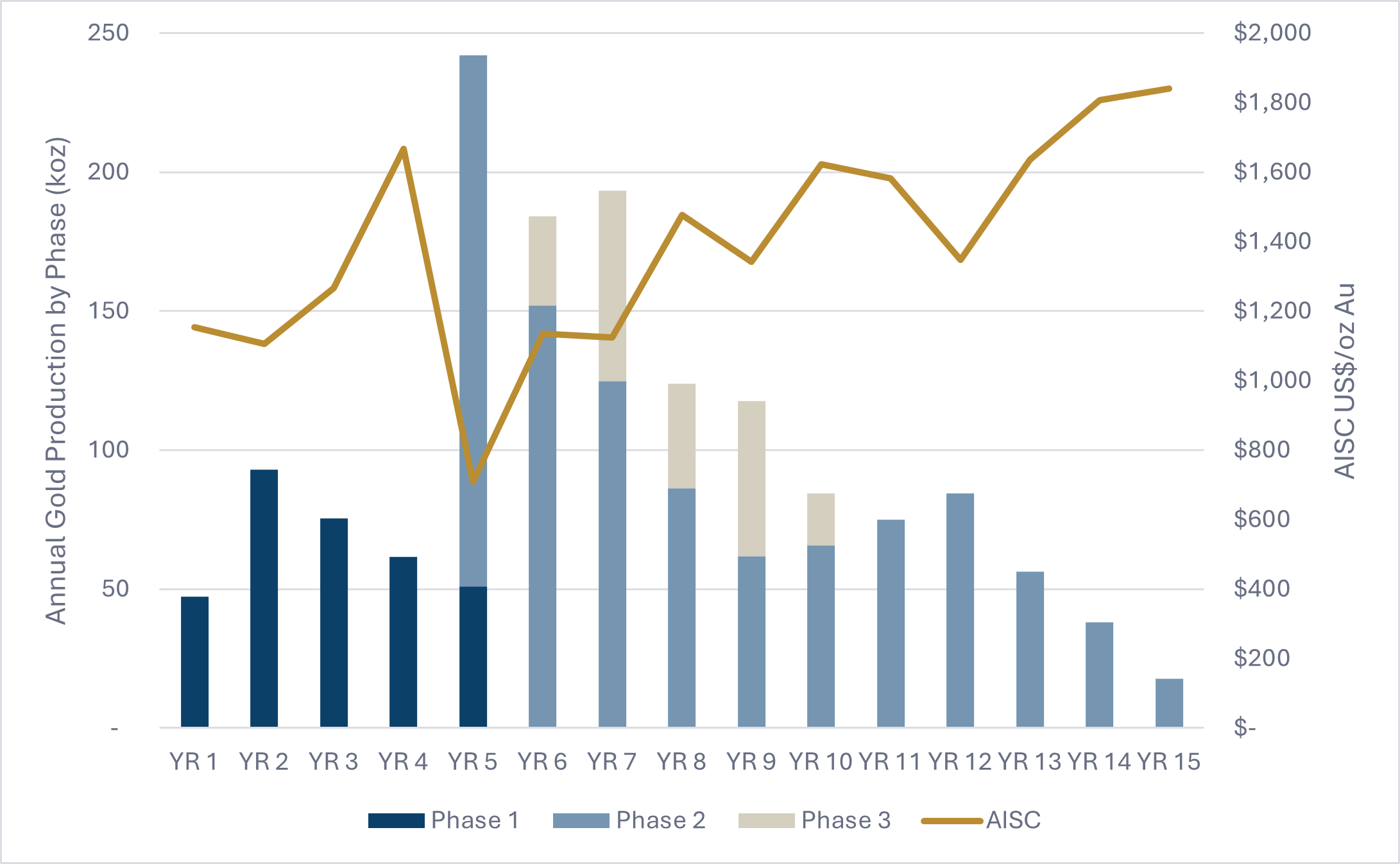 Figure 1: Annual Gold Production by Phase and AISC