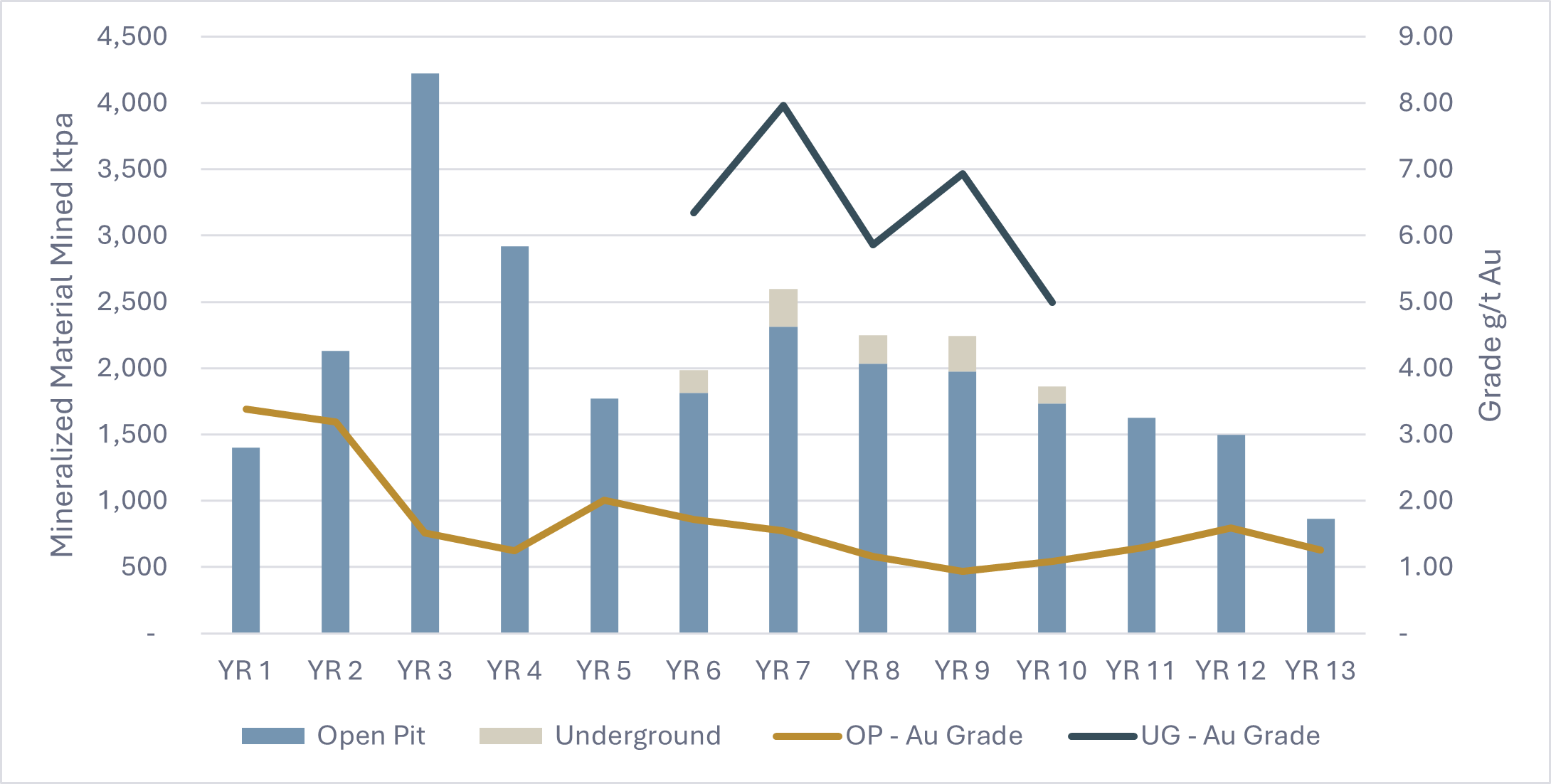 Figure 2: Annual Mining Schedule of Mineralized Material and Grade Profile.